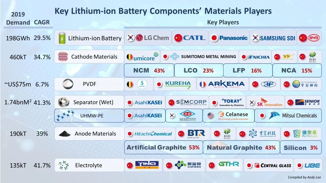 Global Battery materials market was US$19bn as of 2018 (2.6x from 2015), and is estimated to grow at 13% 7-years CAGR, to US$43bn by 2025.