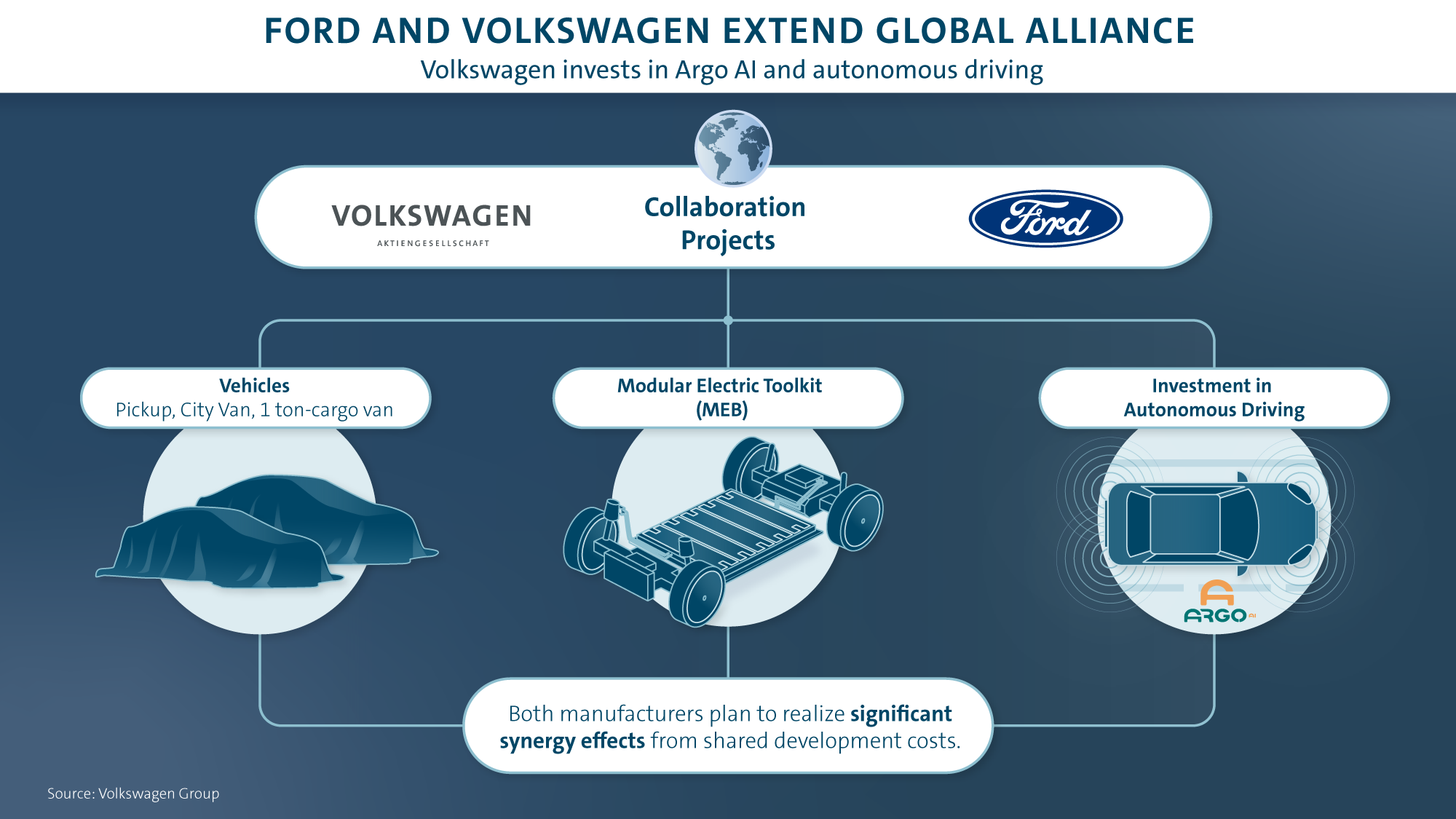 Ford and Volkswagen AG have signed today (10 June) a huge cooperation on the development for midsize pickup trucks and commercial and Electric Vehicles. The collaboration with Ford is a key building block of the VW GRIP 2025+ strategy and part of the VW Commercial vehicle transformation (new products, conversion of plants, development of new mobility services).